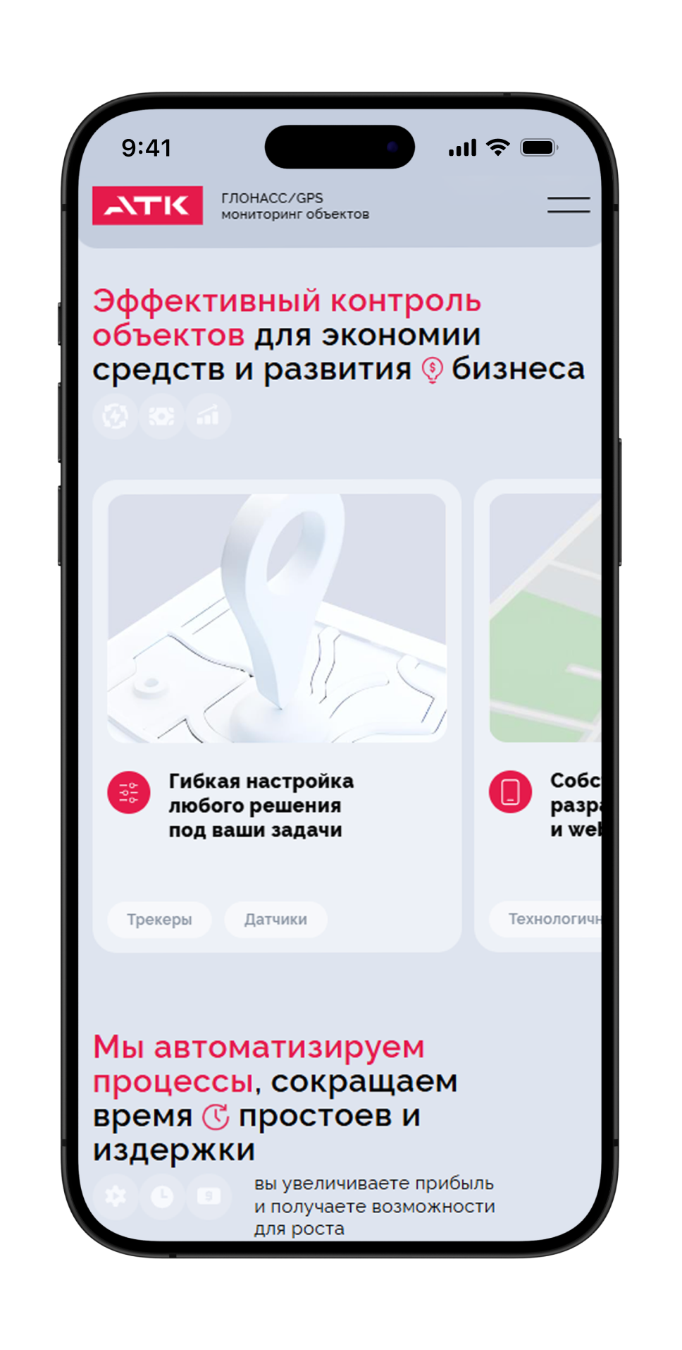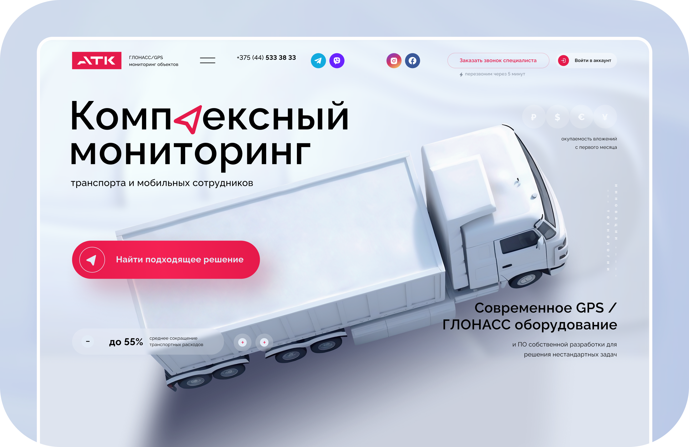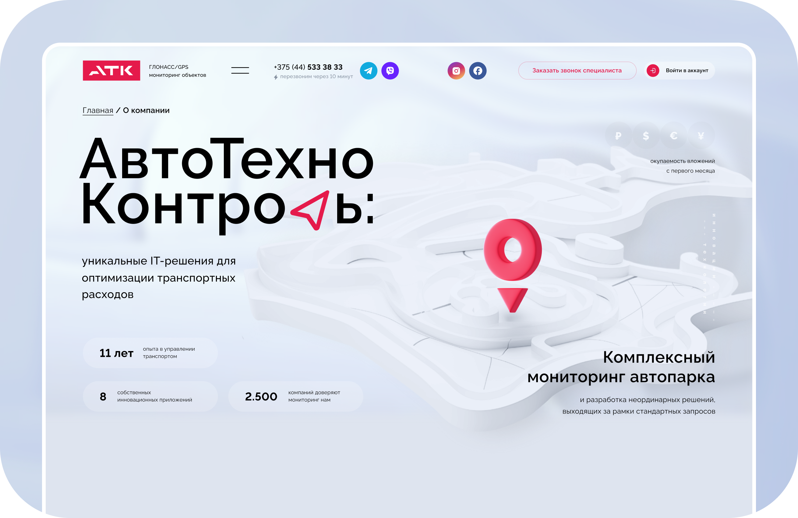 Tack: Задача проекта оказалась глубже, чем просто редизайн. Нам нужно было избавиться от восприятия сайта как каталога оборудования и сформировать образ АТК как технологического партнера, который продает управляемость автопарка, аналитику данных и измеримый экономический эффект.